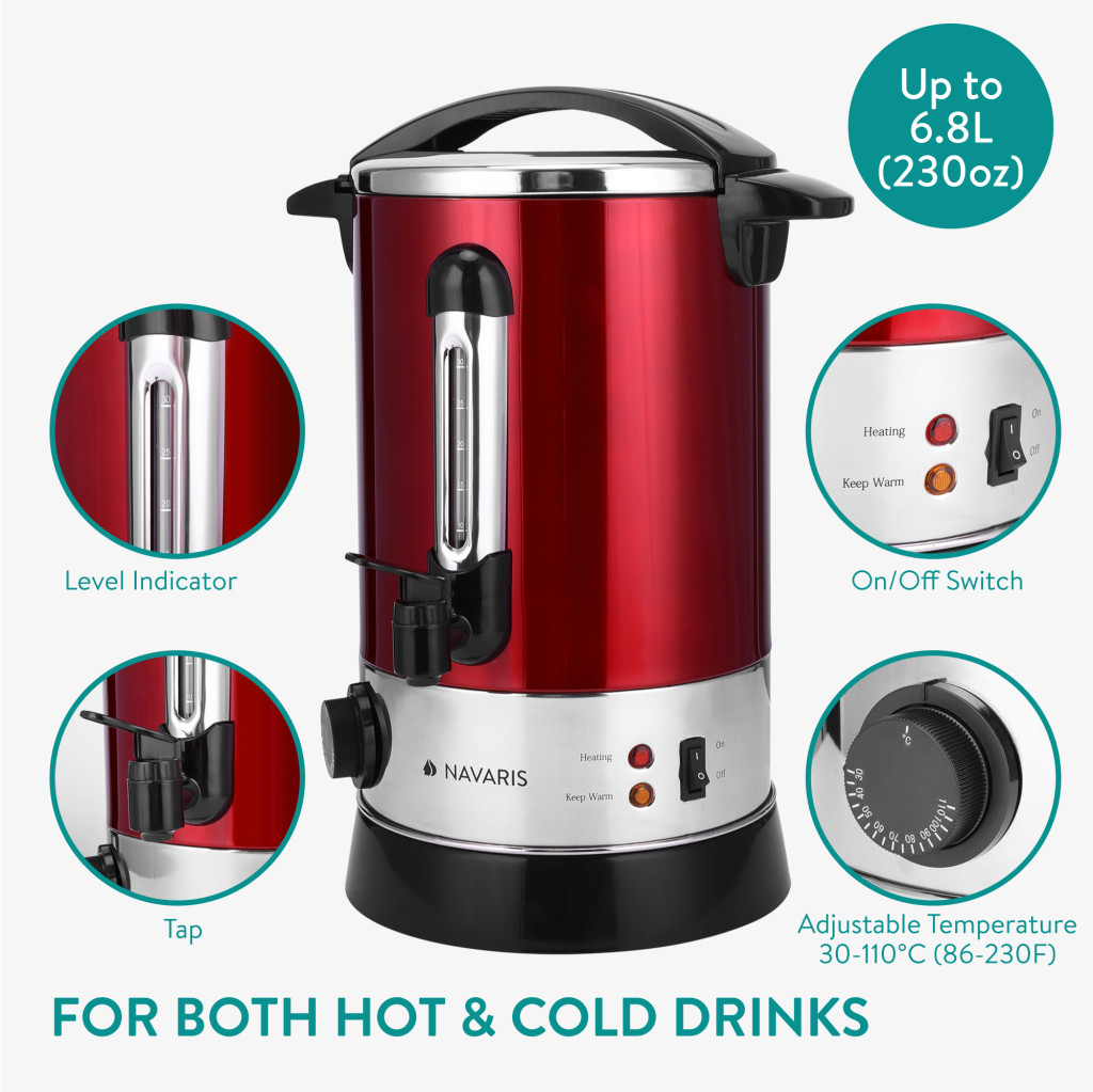 Fierbator vin fiert si apa calda Navaris, 6.8 L, 950 W, distribuitor cu robinet, rosu, metal