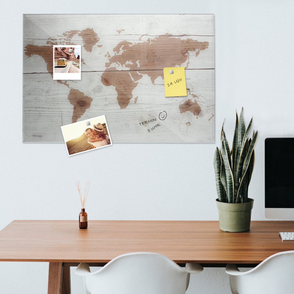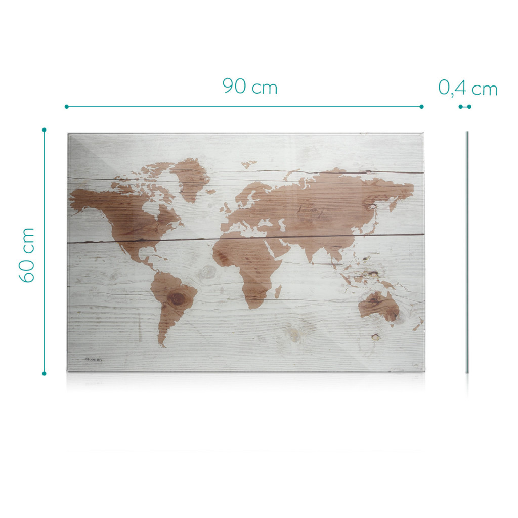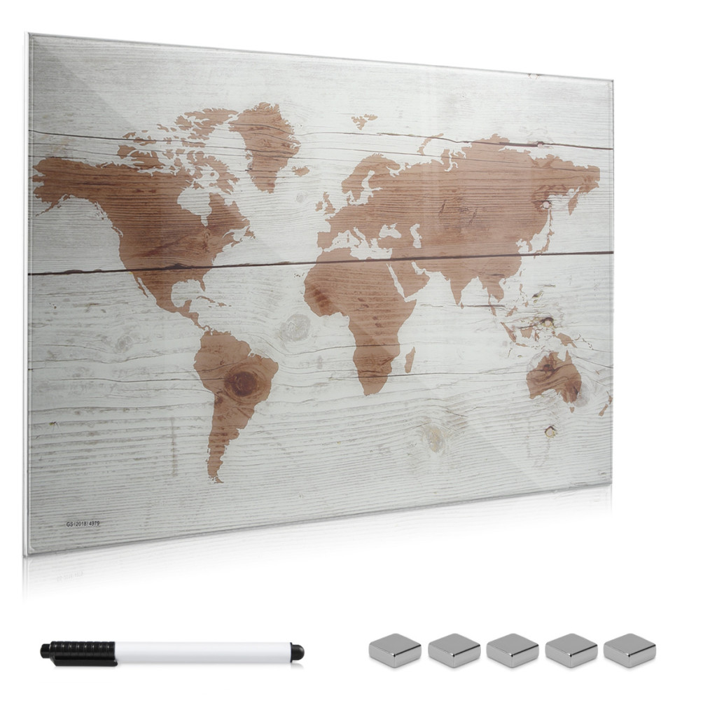 Tabla memo sticla Navaris, 90x60 cm, harta lumii, 5 magneti si marker, negru, sticla