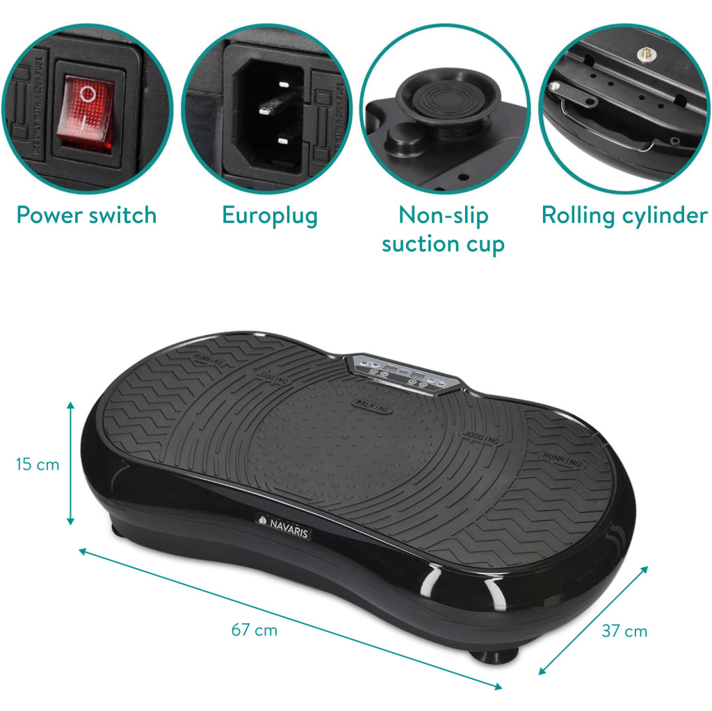 Placa vibromasaj Navaris, 68x39x14 cm, silentioasa, suprafata antiderapanta, negru, plastic