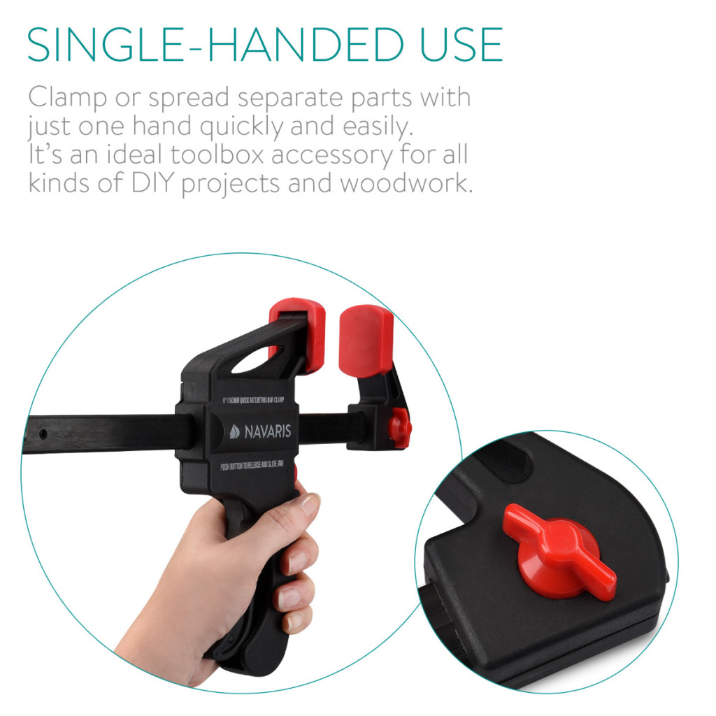 Set 4 cleme rapide Navaris, 15 cm + 10 cm, o mana, pentru lemn, atelier, negru, lemn/nylon/plastic/otel