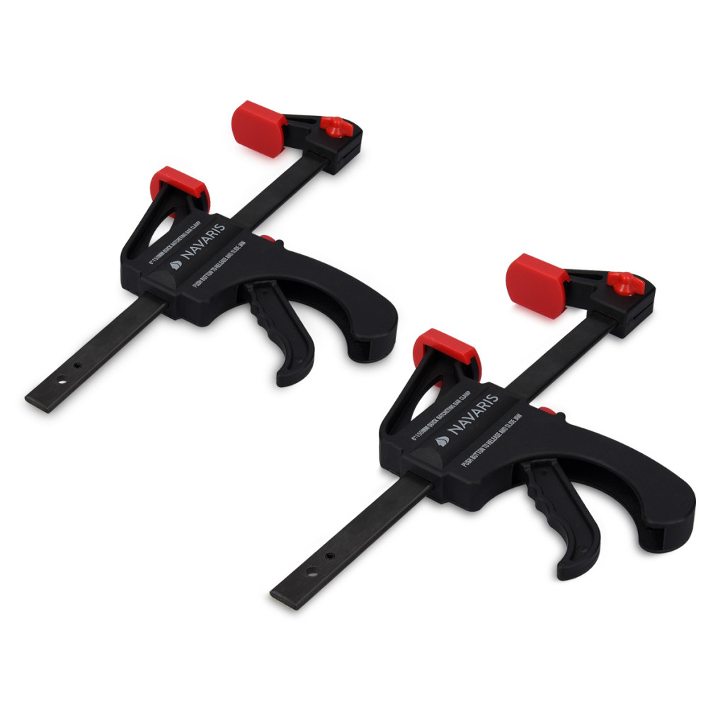 Set 2 cleme rapide Navaris, 15 cm, o mana, pentru lemn si lipire, negru, lemn/nylon/plastic/otel