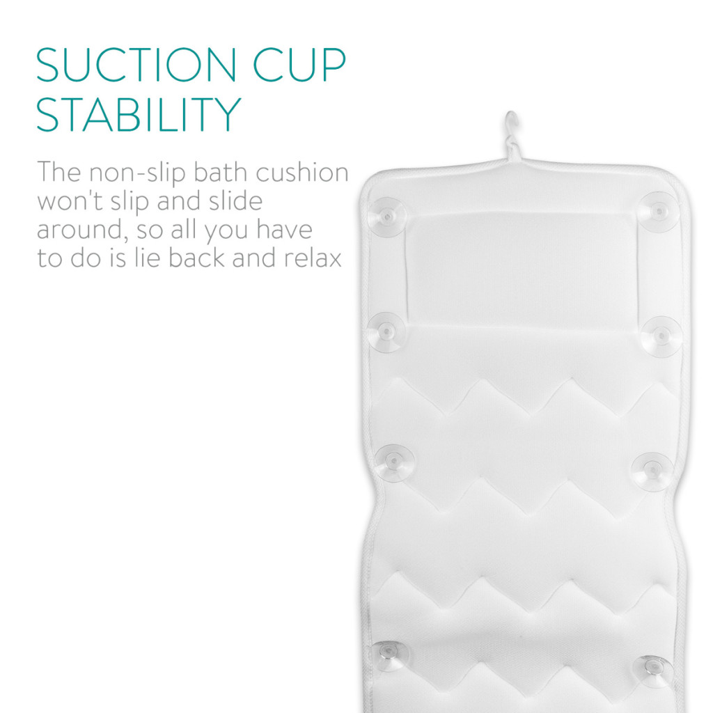 Saltea baie Navaris, 125x42 cm, perna pentru cada cu 13 ventuze antiderapante, alb, poliester