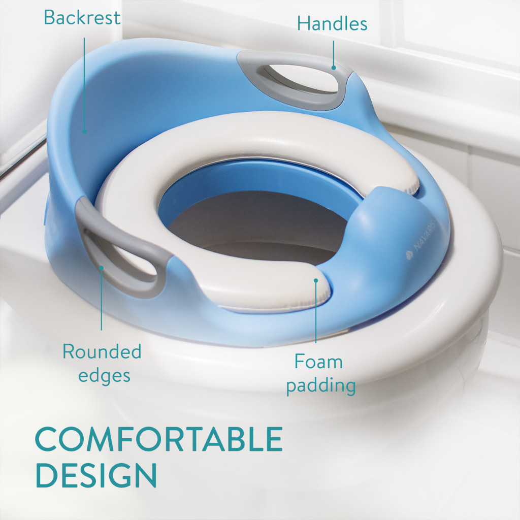 Reductor toaleta copii Navaris, cu capac si manere, 36x32x18 cm, albastru, polipropilena/PVC