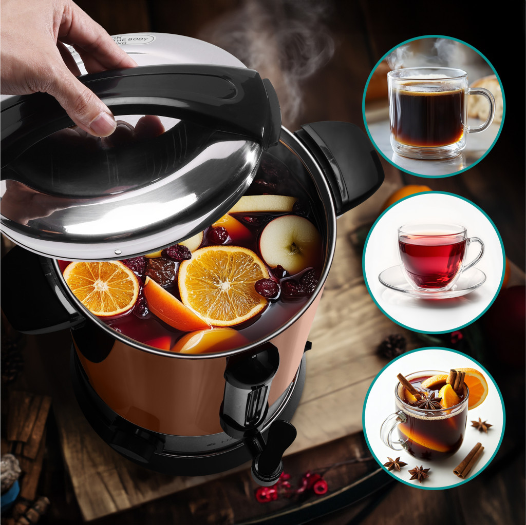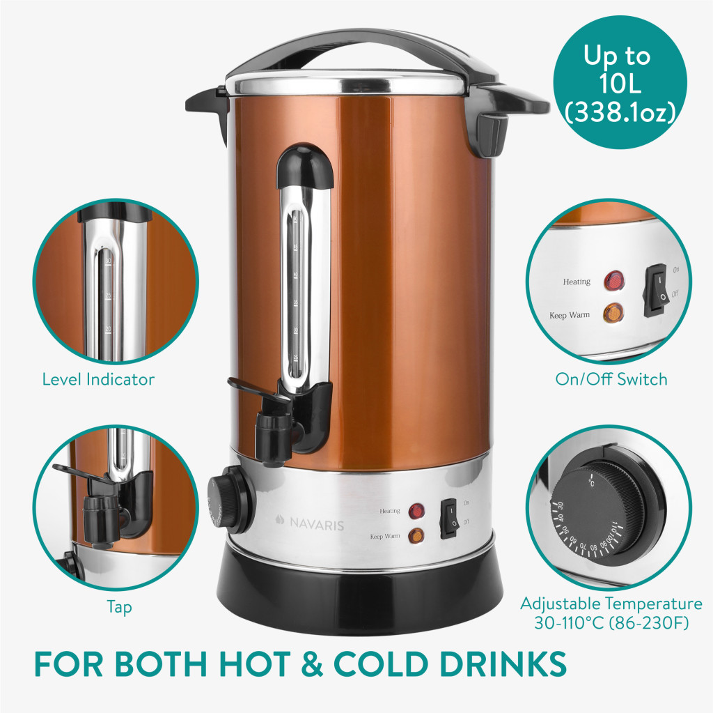 Fierbator vin fiert si apa calda Navaris, 10 L, 1650 W, serviciu bauturi, auriu, metal