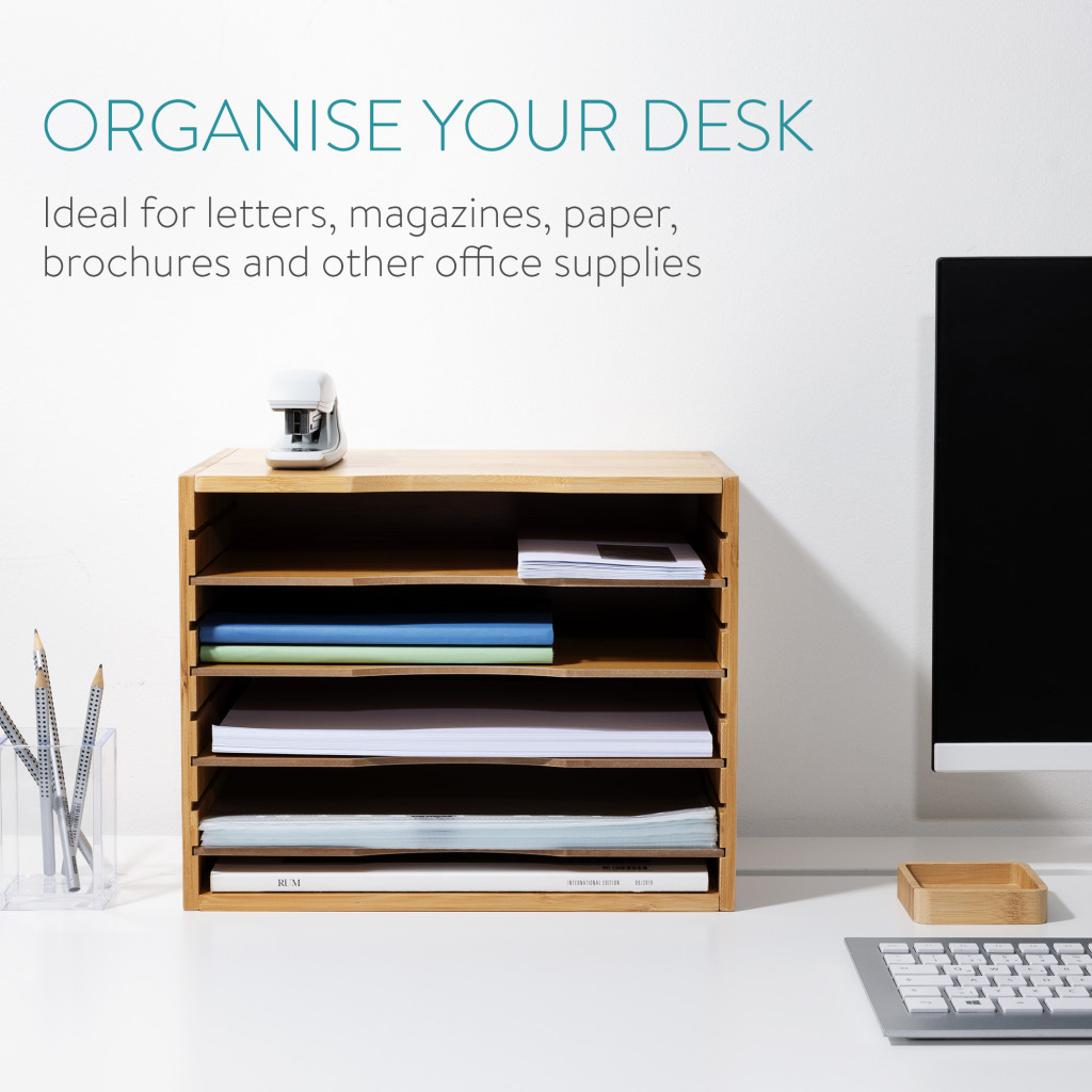 Organizator documente Navaris, 33x24.5x26 cm, rafturi reglabile, birou, maro, bambus