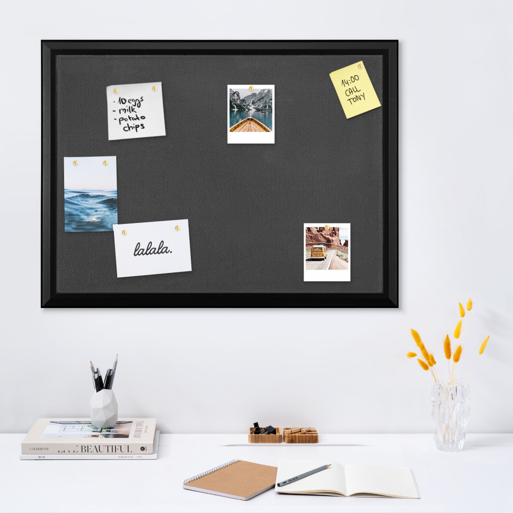 Panou memo textil Navaris, 60x45 cm, cadru MDF, premontat, pini inclusi, alb, MDF/textil