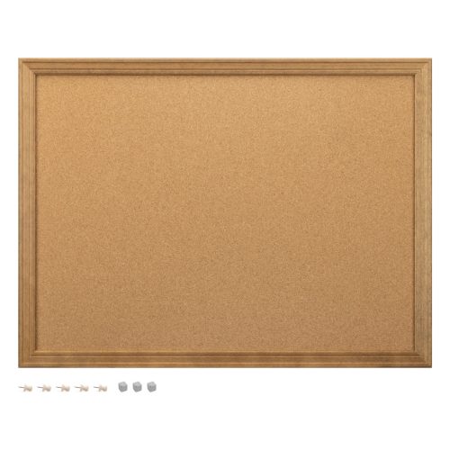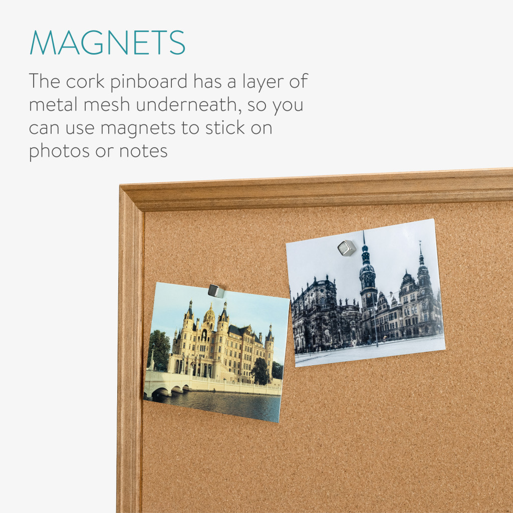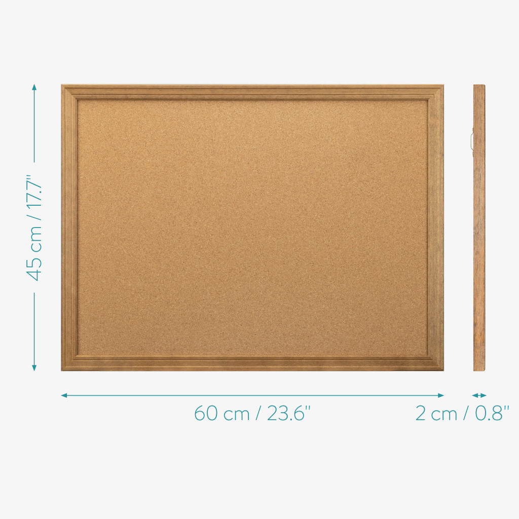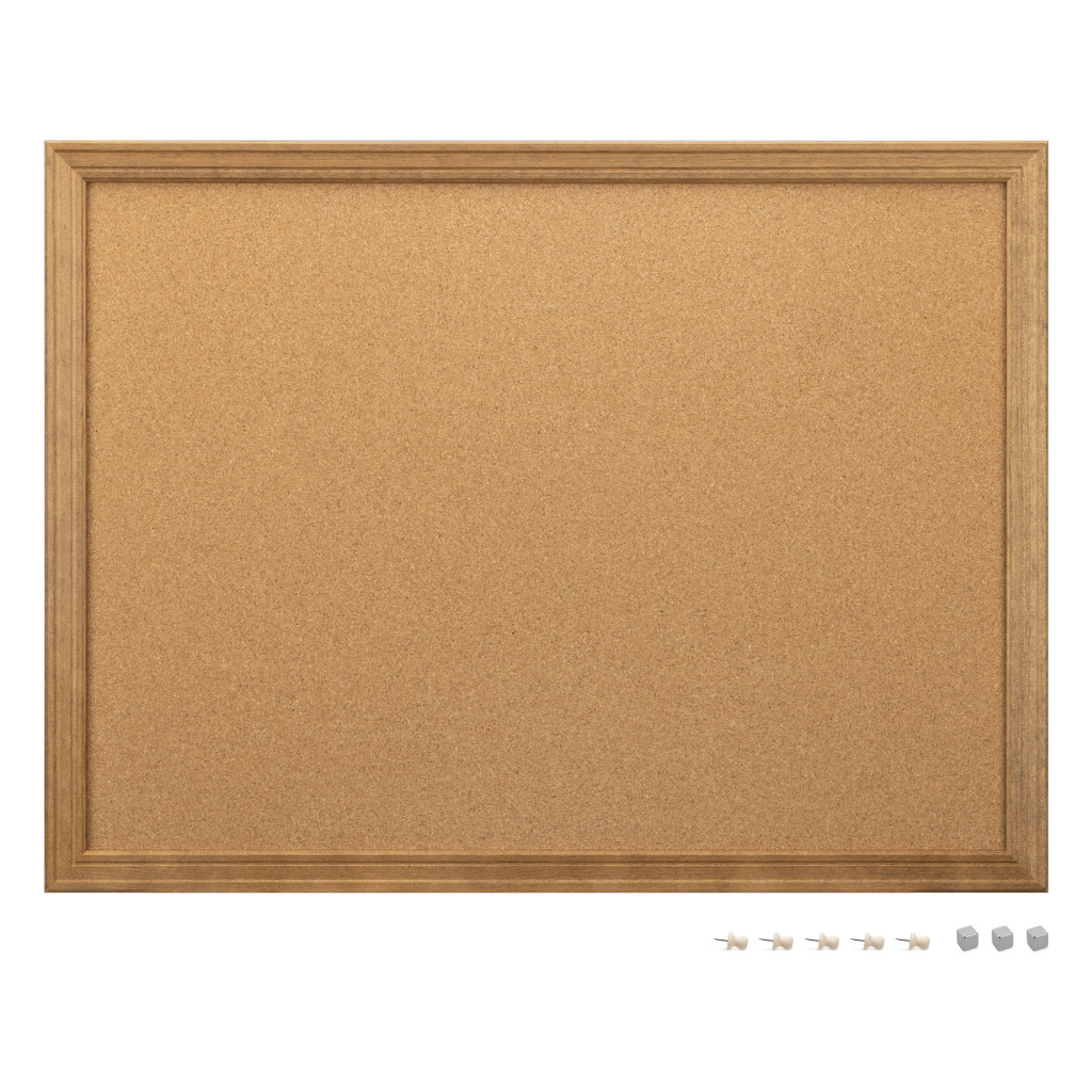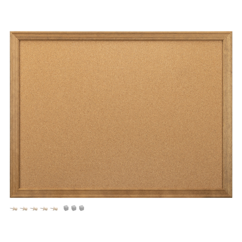 Panou pinboard Navaris, 60x45 cm, pluta magnetica, cadru lemn, pini si magneti, natur, maro, pluta/lemn
