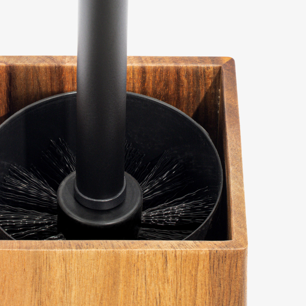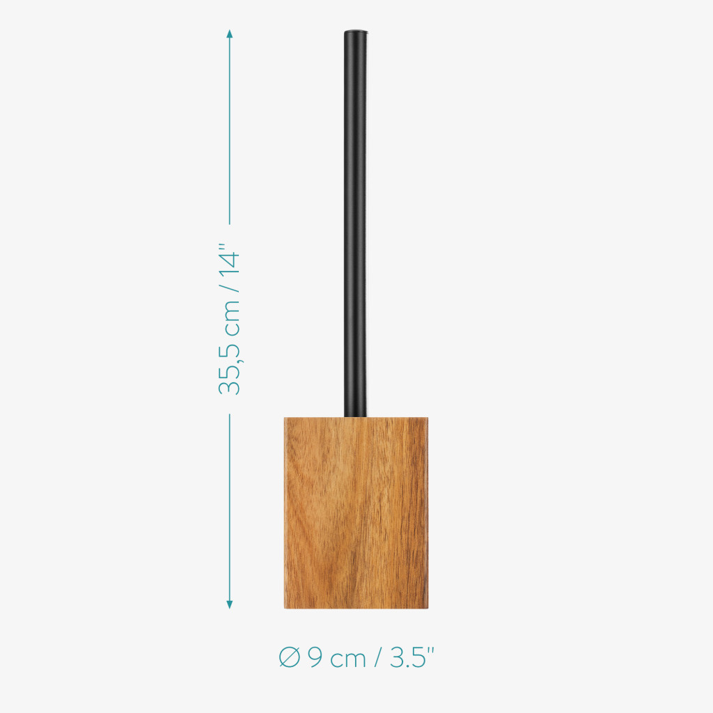 Set perie WC cu suport Navaris, lemn acacia, maner metal, 9x9x35.5 cm, maro natural, maro, lemn/metal