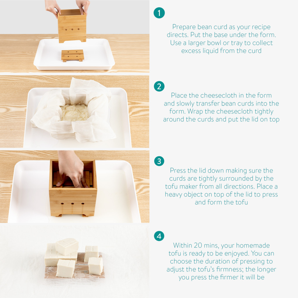Fabricator tofu Navaris, presa din bambus cu cheesecloth, preparare tofu acasa, maro, bambus