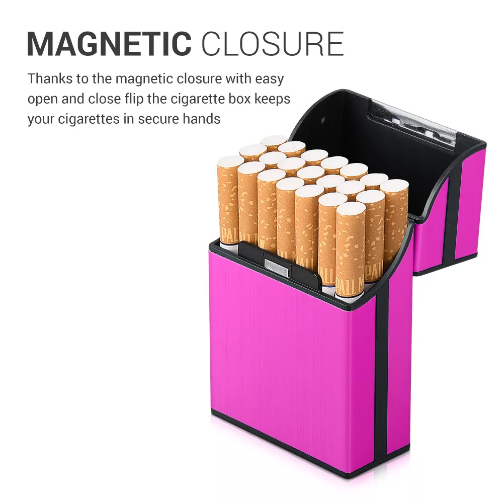 Husa pentru pachet de tigari 9 x 5.9 x 2.6 cm Pachet tigari, Kwmobile, Roz, Aluminiu, 44702.08