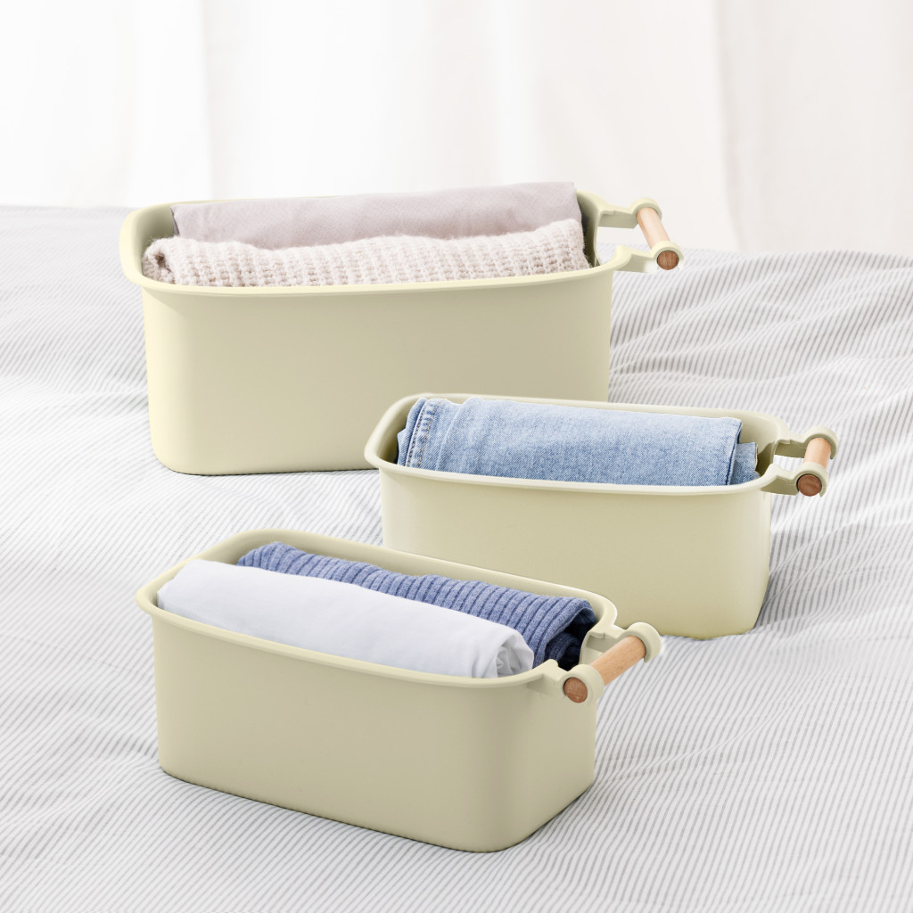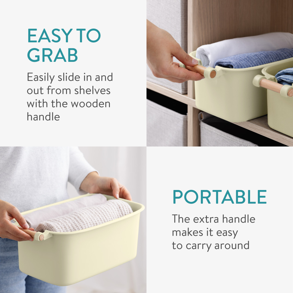 Set 4 cutii depozitare Navaris, cu maner din lemn, 37.8x21.4x14 cm si 28.5x16x10.5 cm, crem, lemn