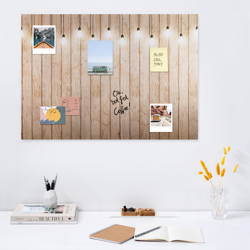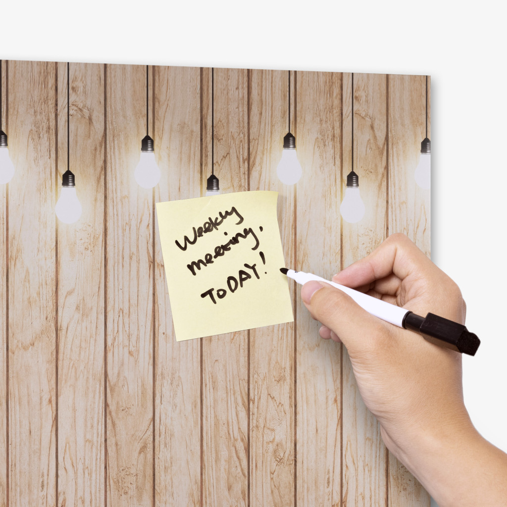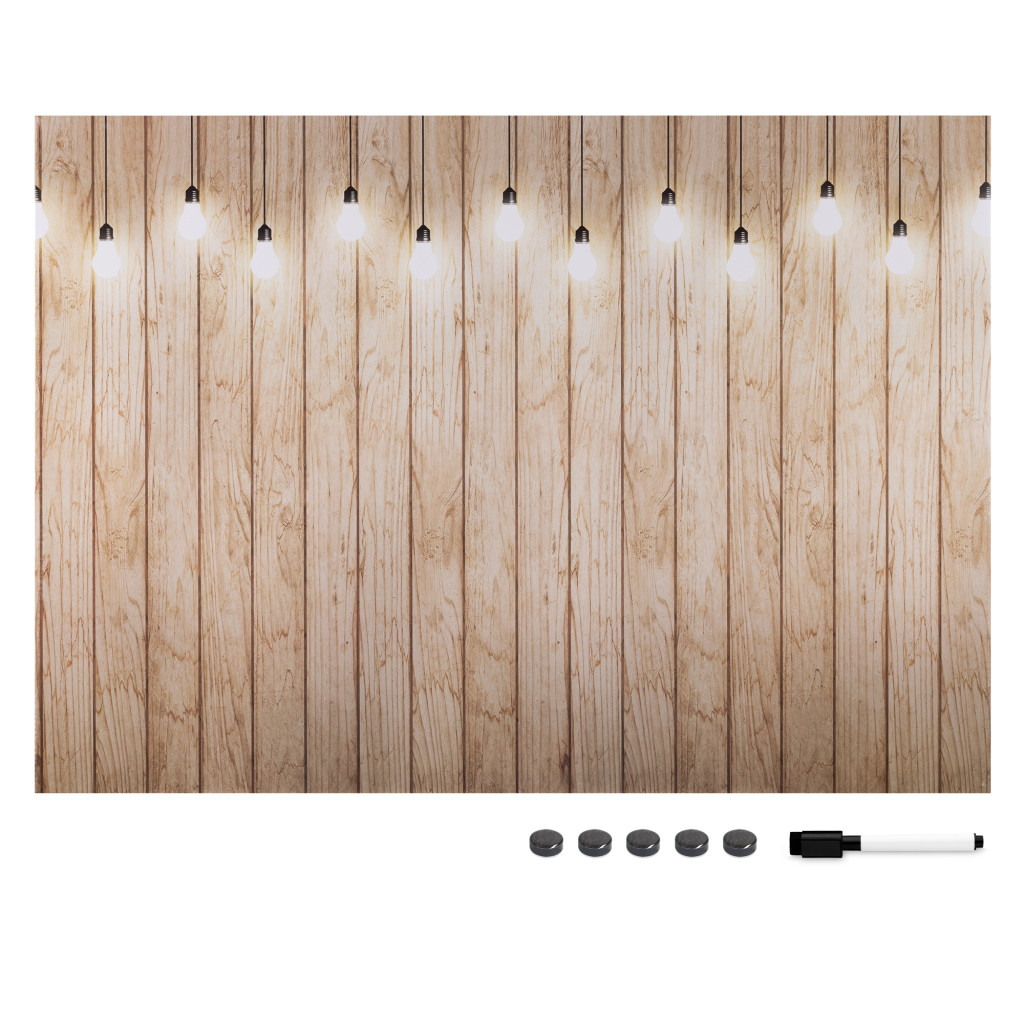 Tabla magnetica Navaris, 90x60 cm, design becuri, marker si 5 magneti, multicolor, MDF/metal