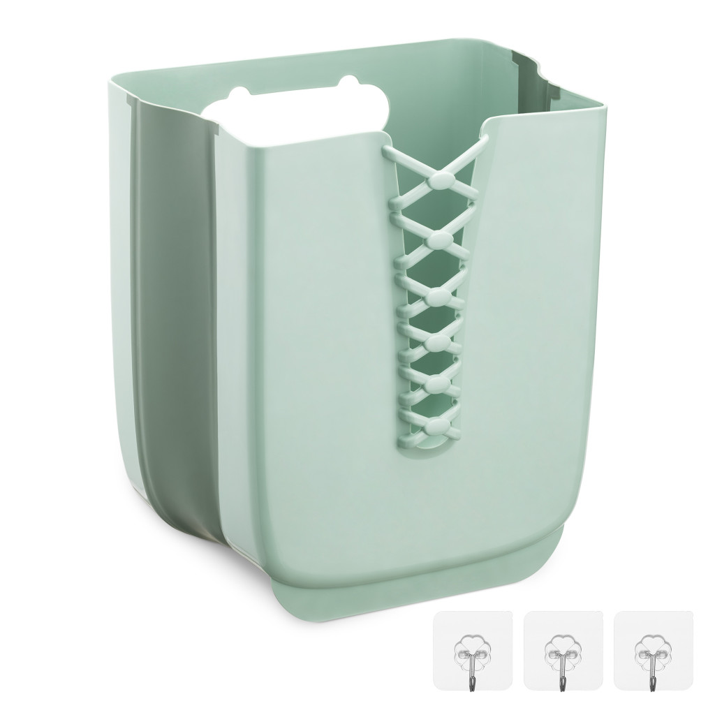 Cos rufe pliabil Navaris, 30 L, montaj pe perete, kit montaj inclus, verde, polipropilena/cauciuc