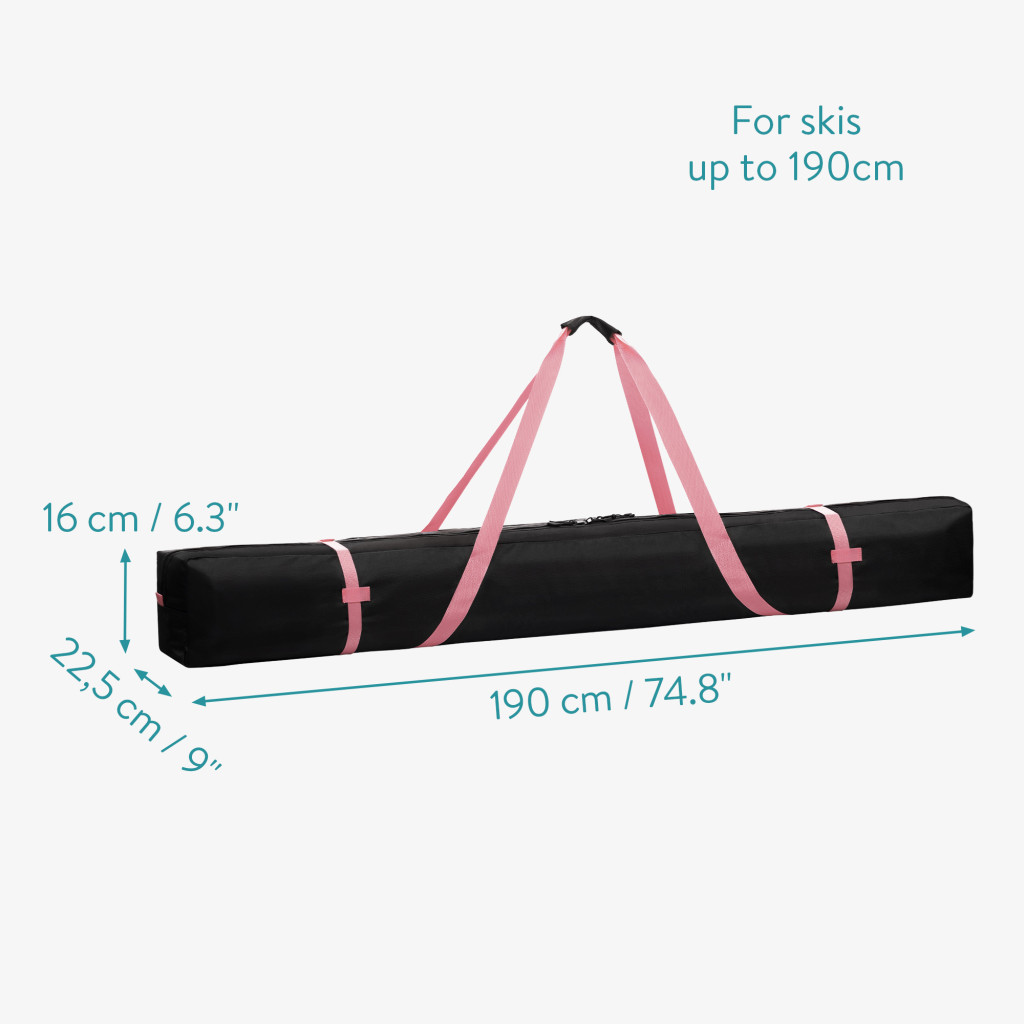 Husa schiuri Navaris, 190x15x30 cm, 1680D, fermoar dublu, curele captusite, negru/roz, poliester