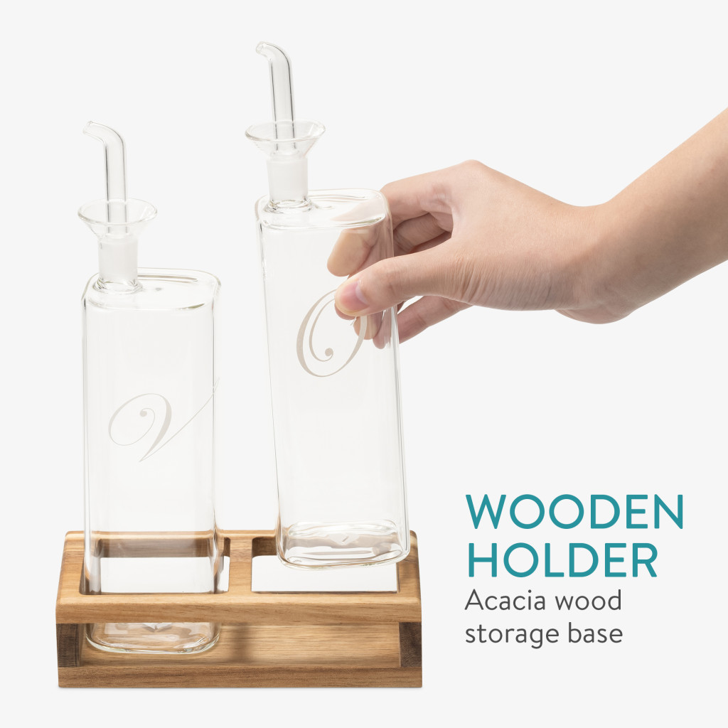 Set recipiente ulei si otet Navaris, 2x220 ml, sticla borosilicata, maro, sticla/lemn
