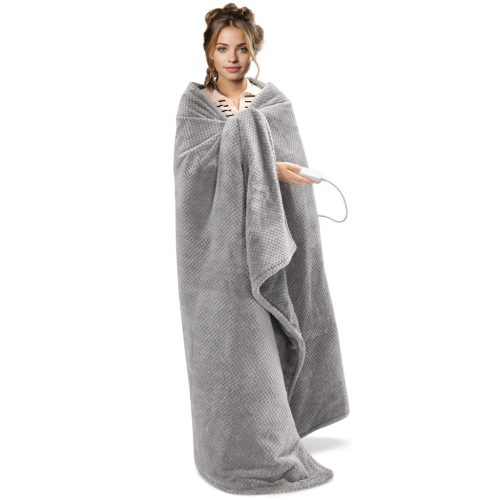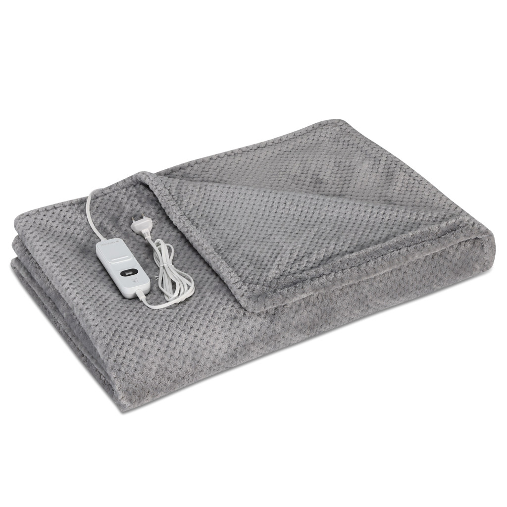 Patura electrica Navaris, moale, 180x130 cm, priza EU, pentru pat/canapea, gri, poliester