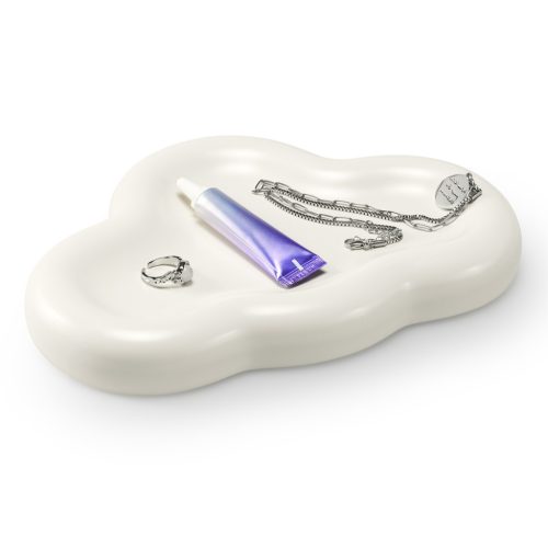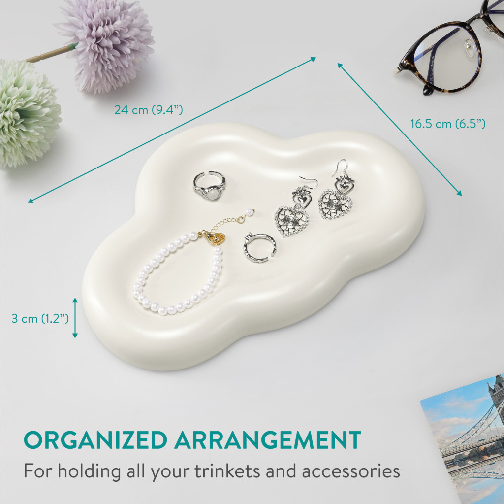 Tava ceramica Navaris, design abstract Cloud, 24x16.5x3 cm, pentru bijuterii, alb, ceramica