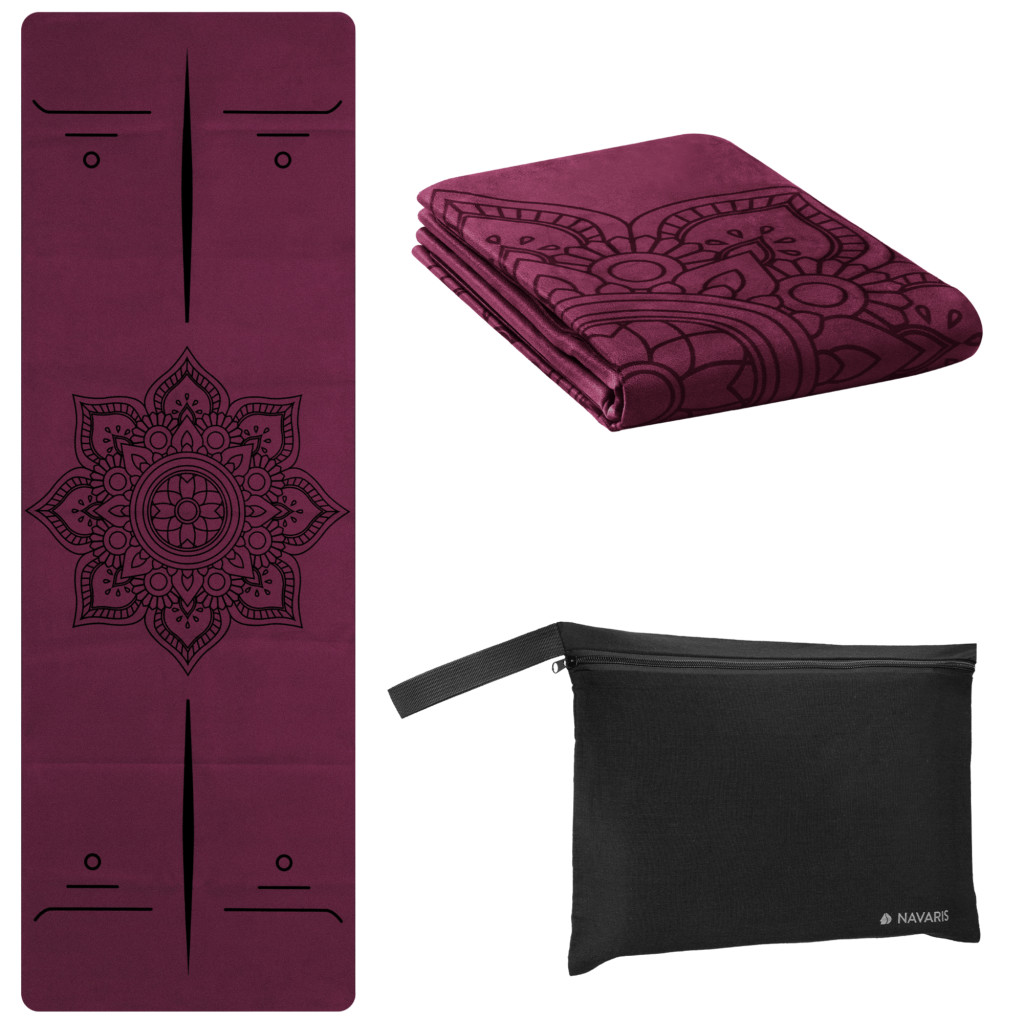 Saltea yoga pliabila Navaris, 183x61x0.15 cm, usor de transportat, eco, negru, cauciuc/bumbac
