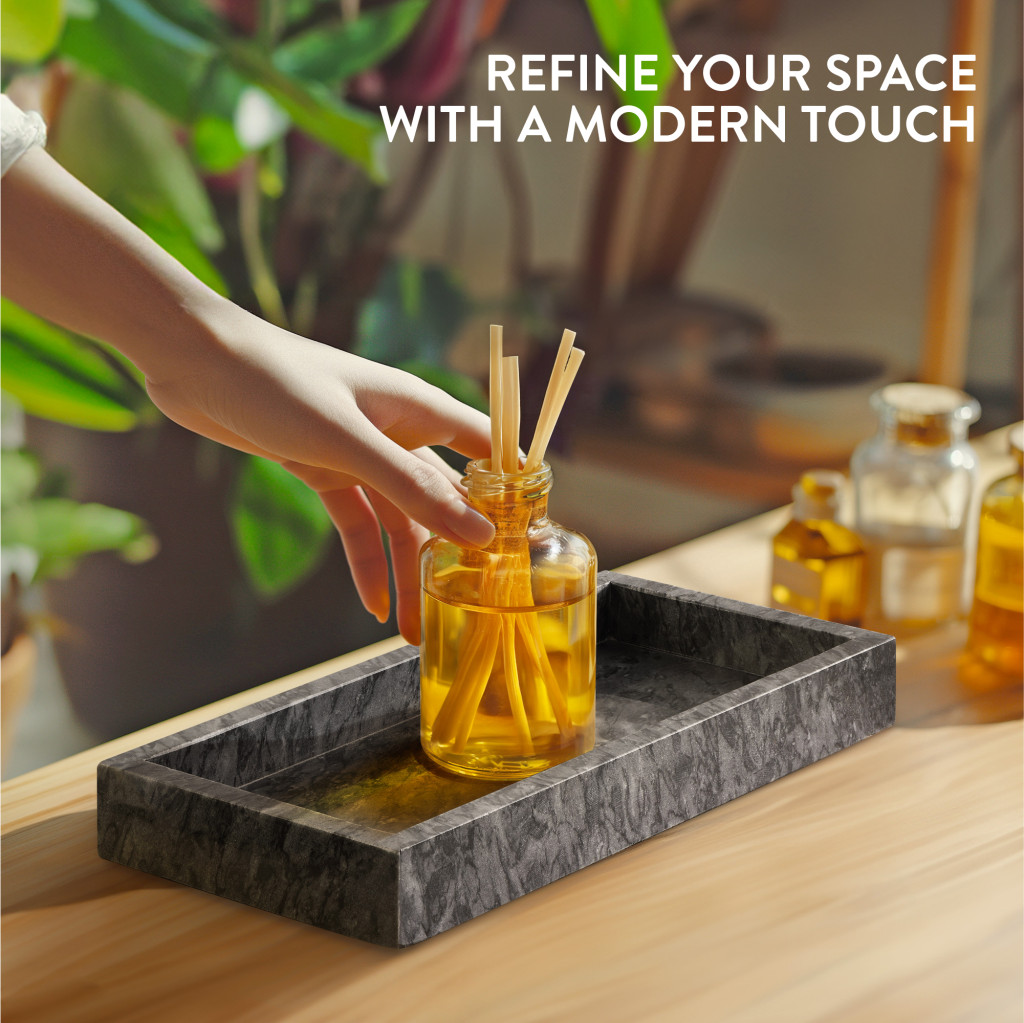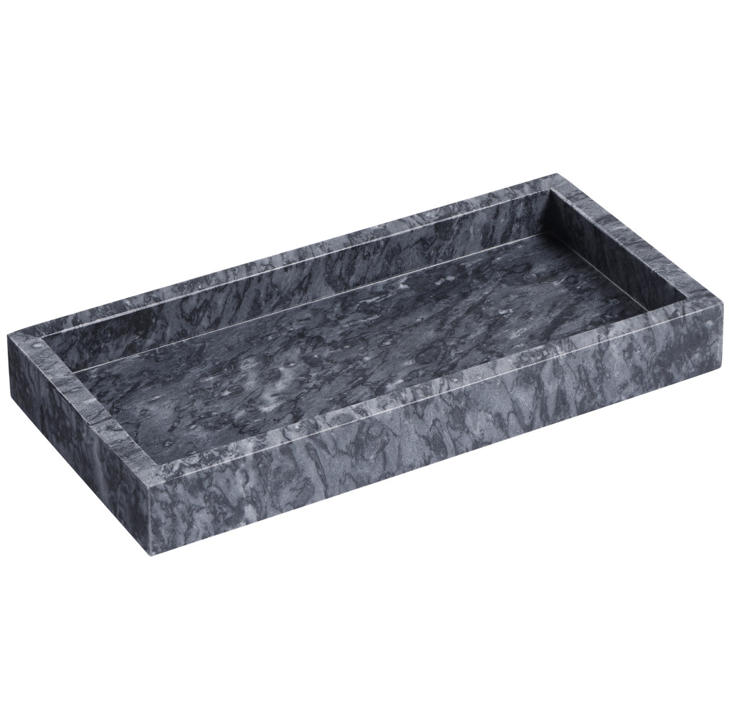 Tava vanity marmura Navaris, 25x12x3 cm, baie si living, marmura, negru, piatra naturala