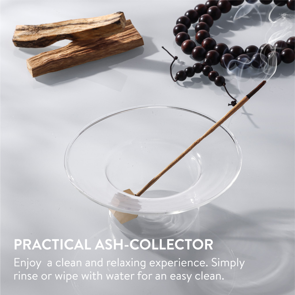 Suport betisoare parfumate Navaris din sticla borosilicata, bol 11.3x5.5 cm, transparent, sticla/metal