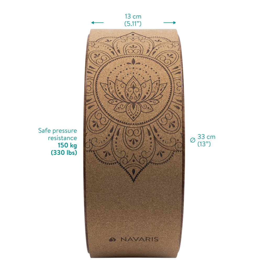 Rola yoga Navaris, 33x13 cm, miez PP, exterior pluta, model lemn, maro, polipropilena/pluta/lemn