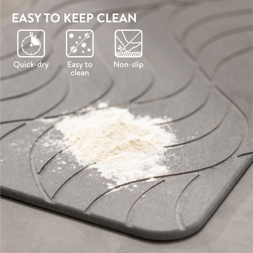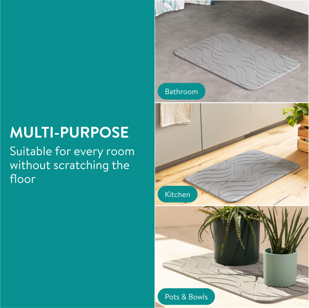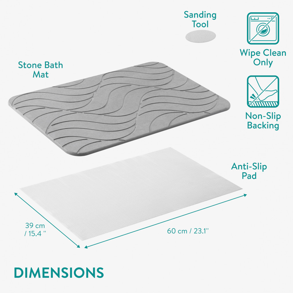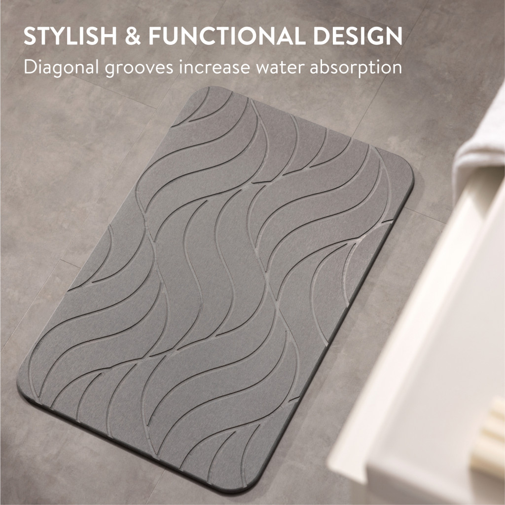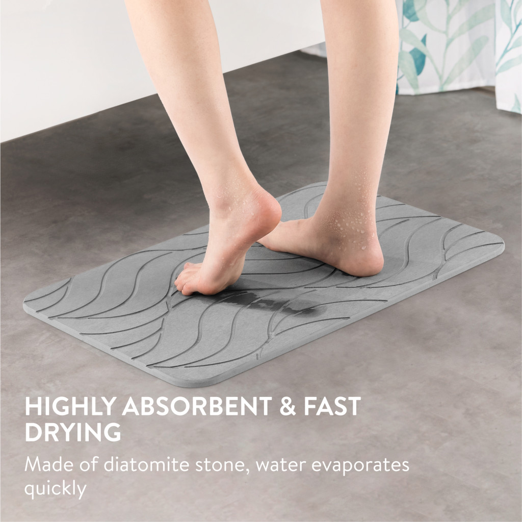 Covoras baie piatra diatomita Navaris, uscare rapida, 60x39 cm, antiderapant, diatomita, gri, piatra