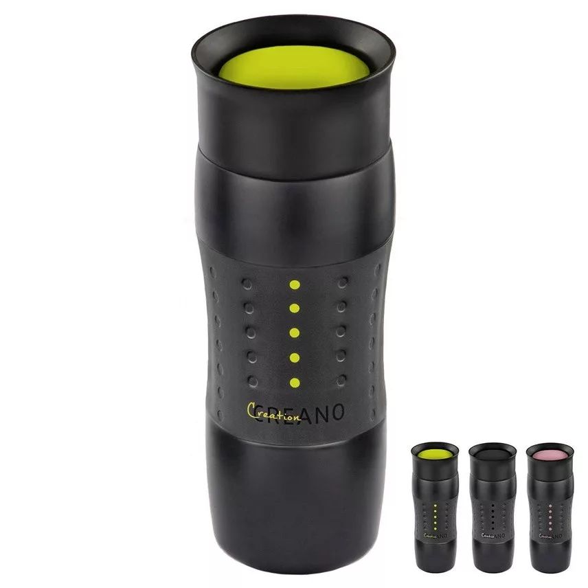 Cana termos Creano Design Travel Mug, 420 ml, inox, etansa, deschidere 360, verde