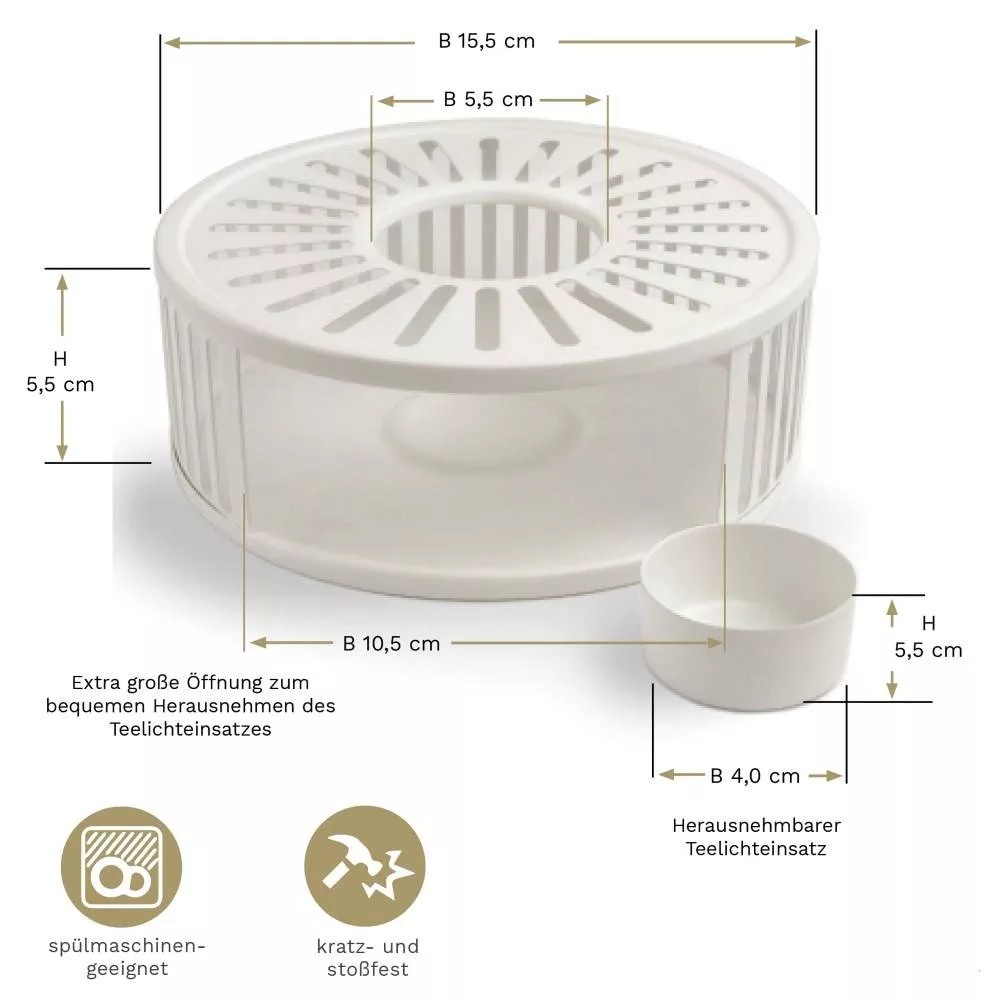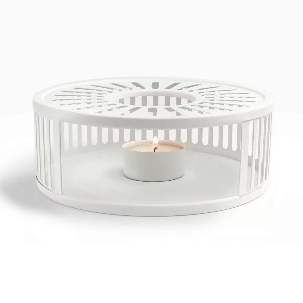 Suport incalzire ceainic Creano Stripes, alb, din inox, cu suport pentru lumanare