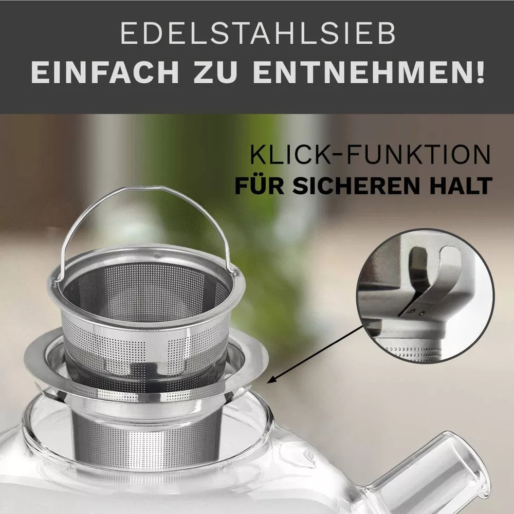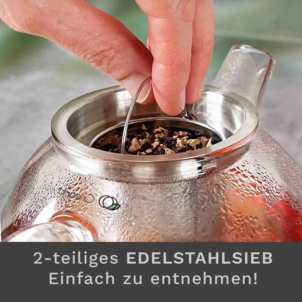 Ceainic din sticla Creano, 1 L, cu sita din inox si capac, pentru ceai vrac
