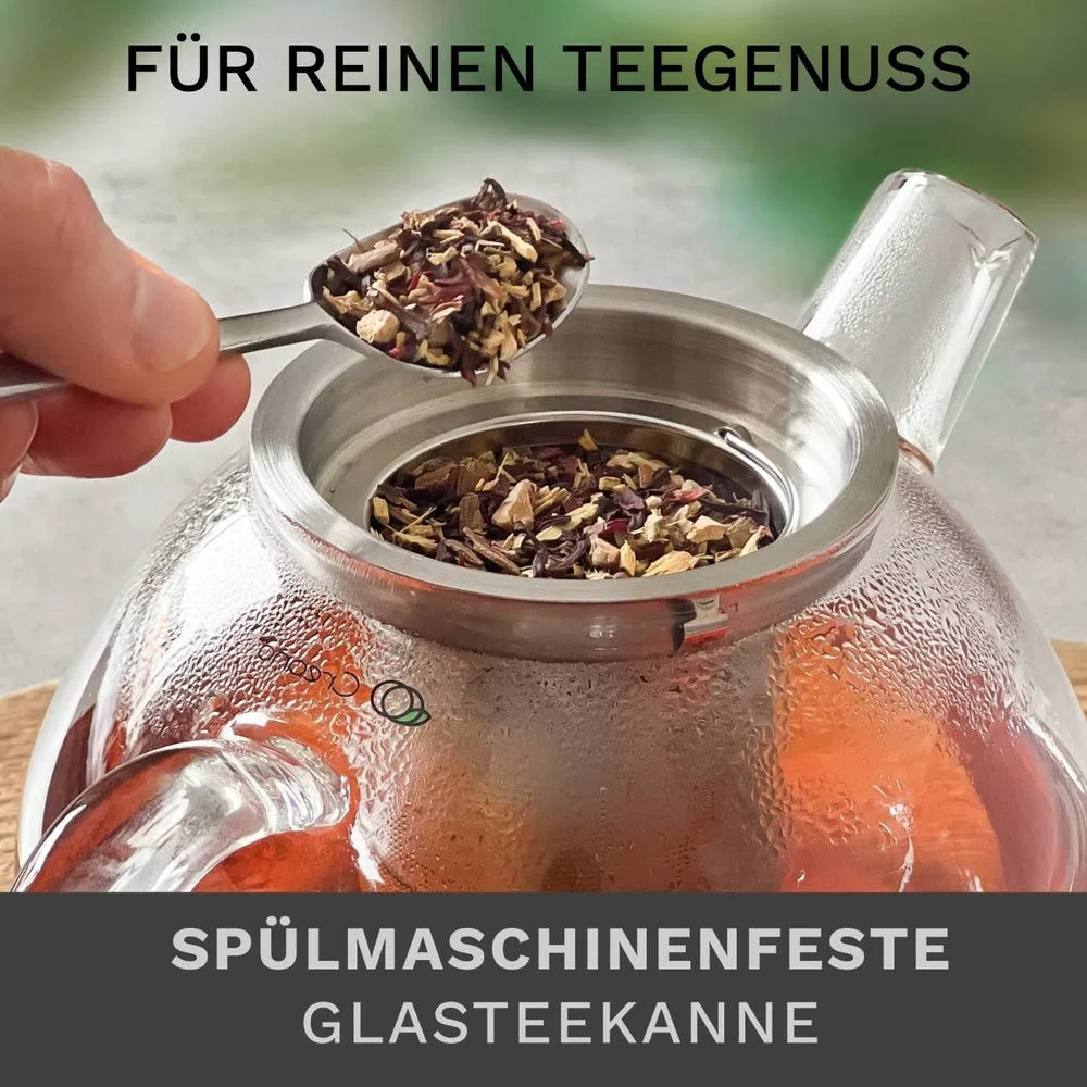 Ceainic din sticla Creano, 1,6 L, cu sita din inox si capac, pentru ceai vrac