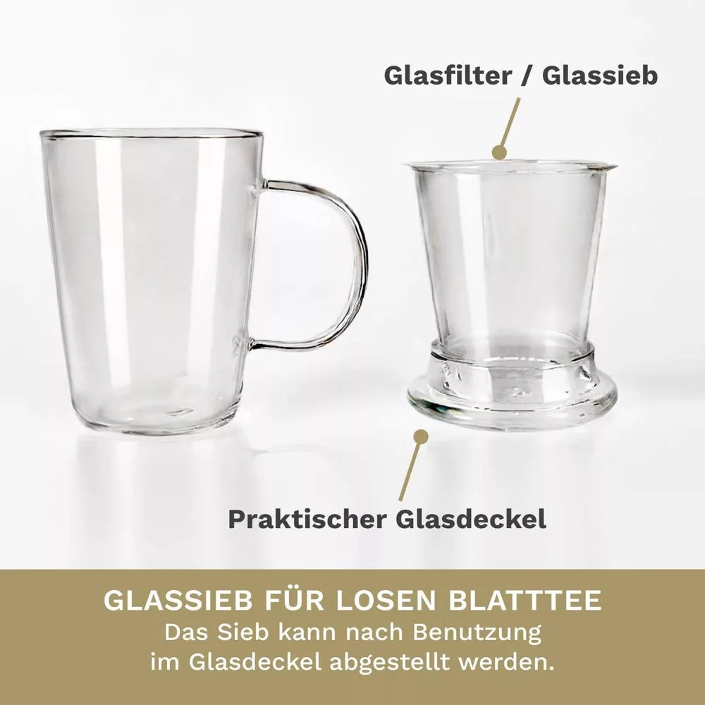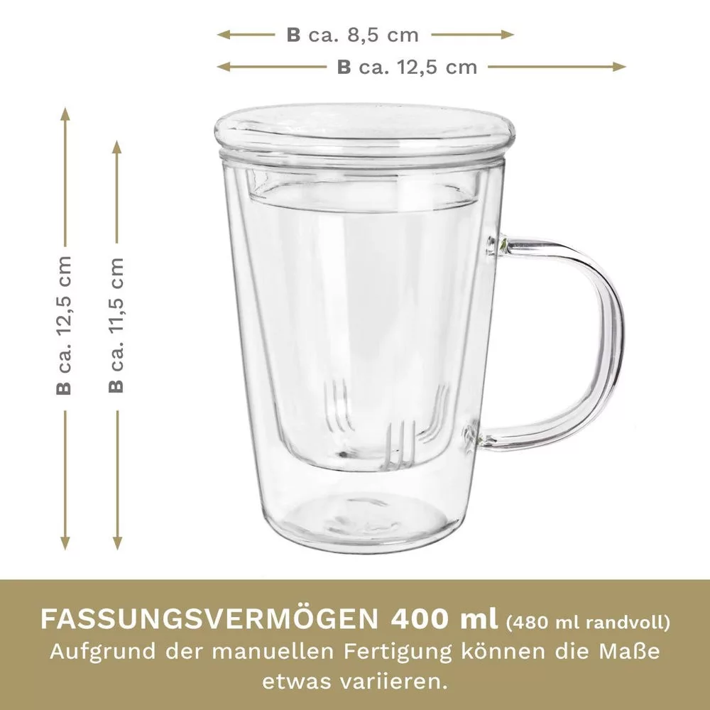 Cana pentru ceai Creano, 400 ml, sticla borosilicata, cu infuzor si capac din sticla